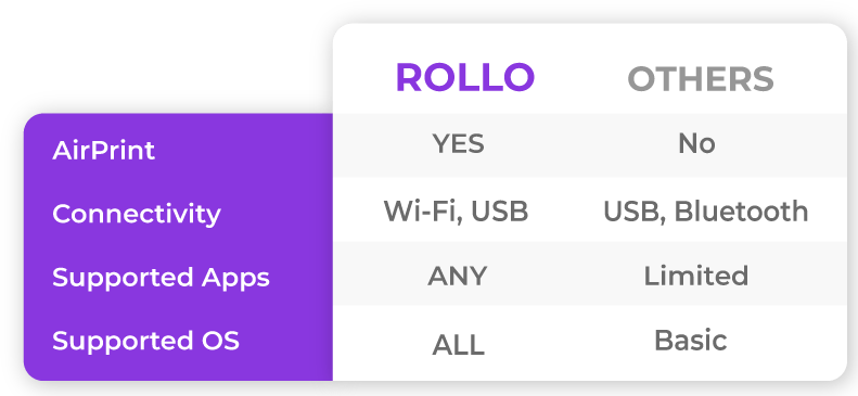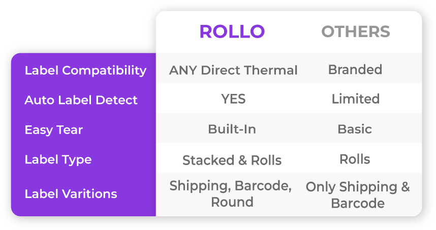 Rollo works with any tag, tears effortlessly, and prints multiple labels at once at a high speed.